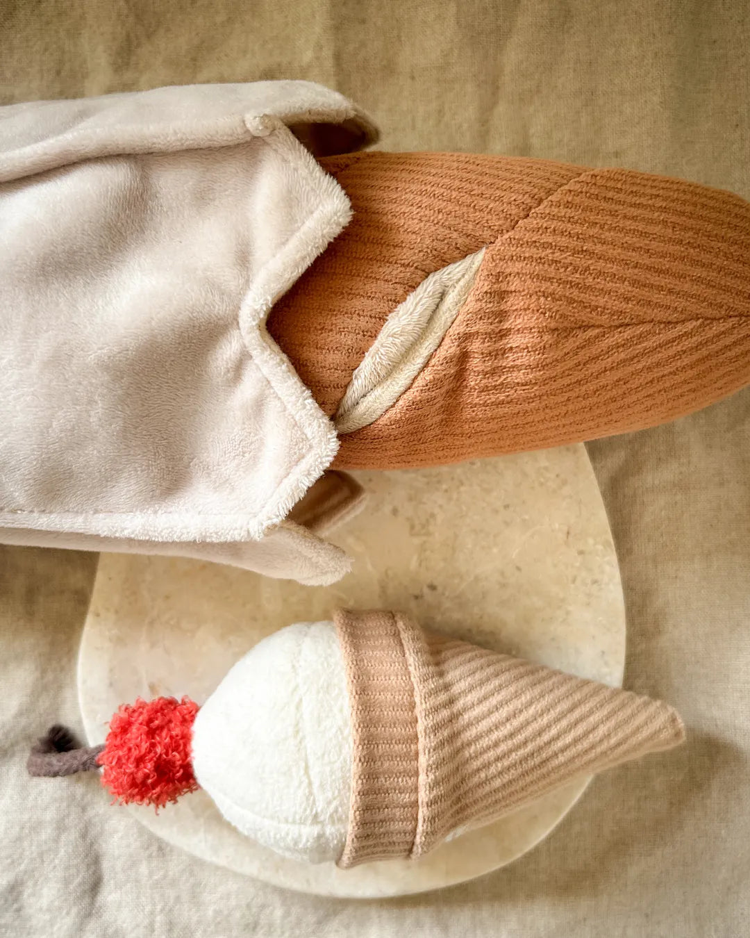 Ice Cream Toy: A squeaky fleece “scoop” sits on a soft corduroy cone, perfect for chewing, snuffling and foraging. Combines fetch, snuffle and squeak in one irresistible design.